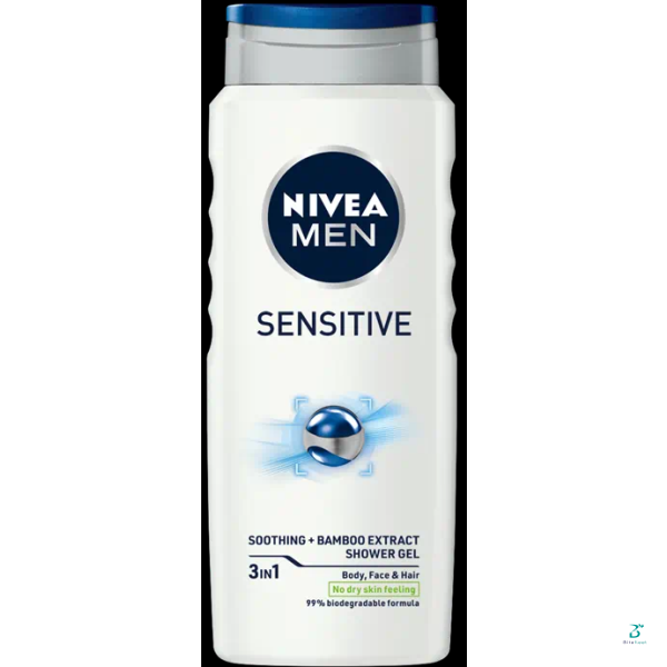 NIVEA MEN Sensitive Shower Gel soothes your body, face and hair. The shower gel with Bamboo Extract has been developed with your sensitive skin in mind – no more dry skin feeling when taking a shower! The caring formula with its invigorating scent provides your skin with long-lasting freshness, leaving your skin and hair feeling revitalized and cared for. Simply apply the shower gel to your wet skin and massage it onto your body, face and hair before thoroughly rinsing it off. Simply apply the shower gel to your wet skin and massage it onto your body, face and hair before rinsing it off. The formula is 99% biodegradable* and free of microplastics. Take good care of your sensitive skin with NIVEA MEN Sensitive.